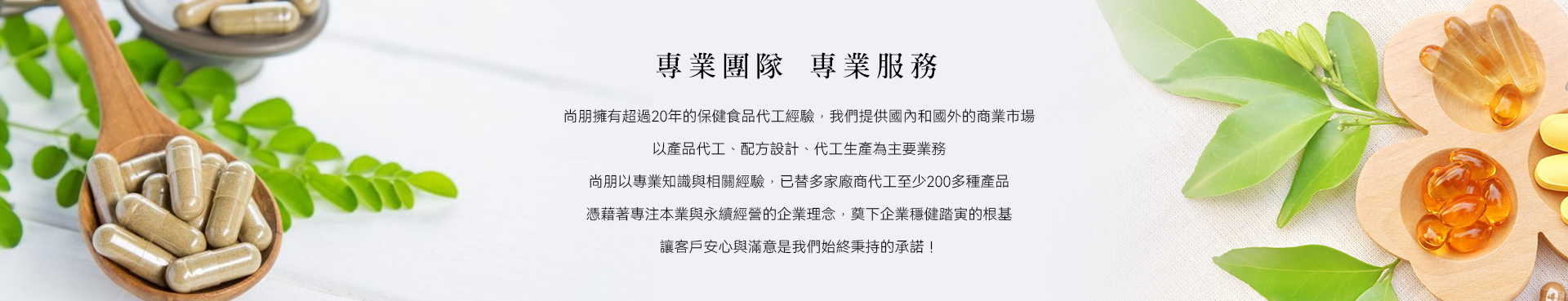 尚朋國際股份有限公司以健康、專業、堅持的發展理念為職志並與國內各大藥廠、原料商等長期密切合作