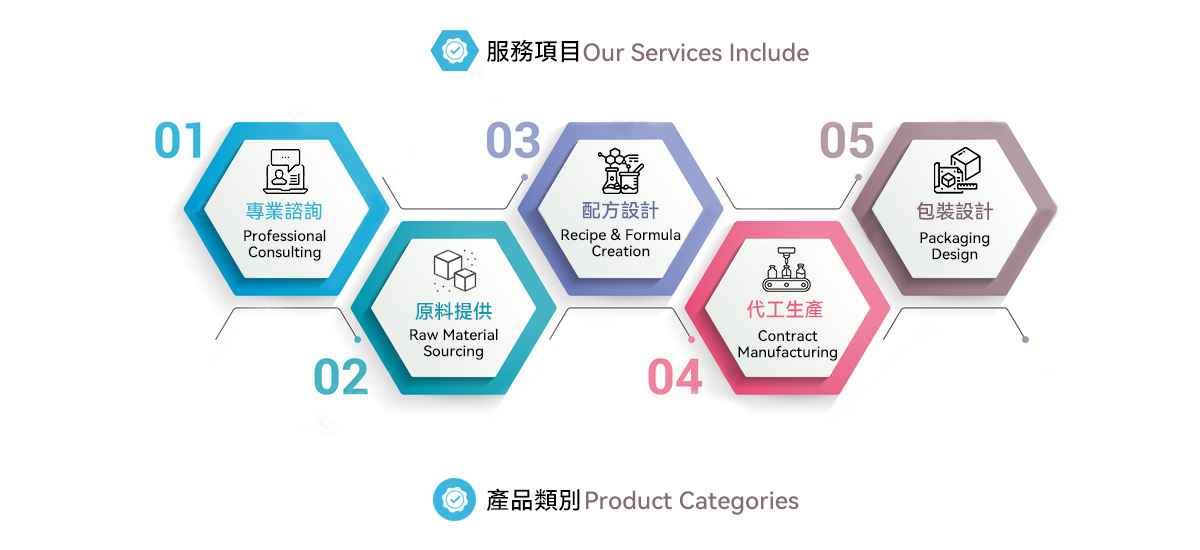 穀胱甘肽(GSH)、專利B-聚葡萄糖、專利薑黄萃取物、冬蟲夏草菌絲體(中華被毛孢Hirsutell sinensis)、維生素C