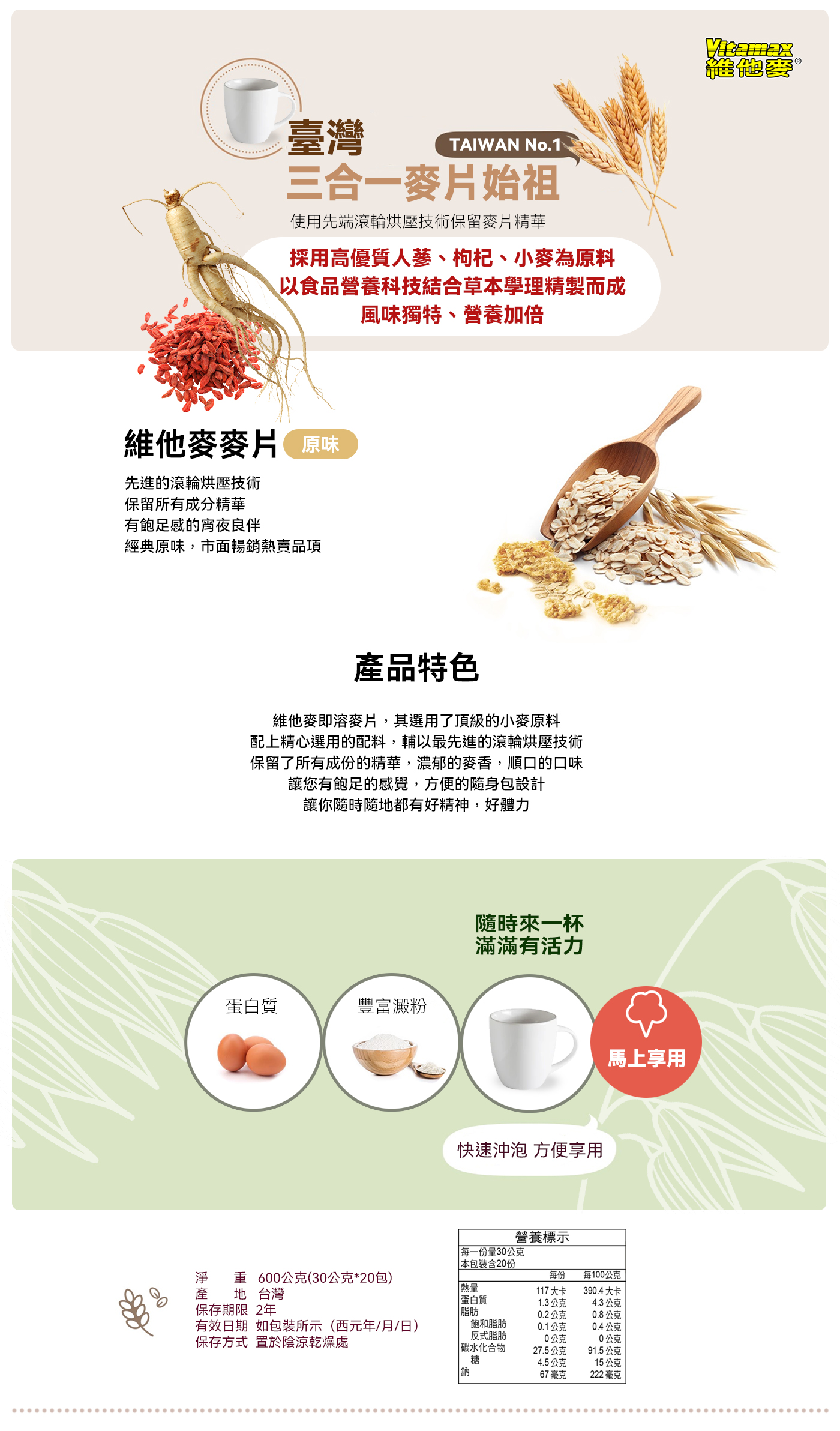 維他麥 高營養人蔘枸杞麥片